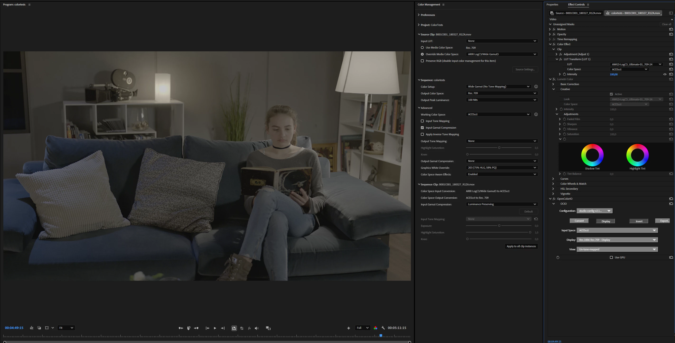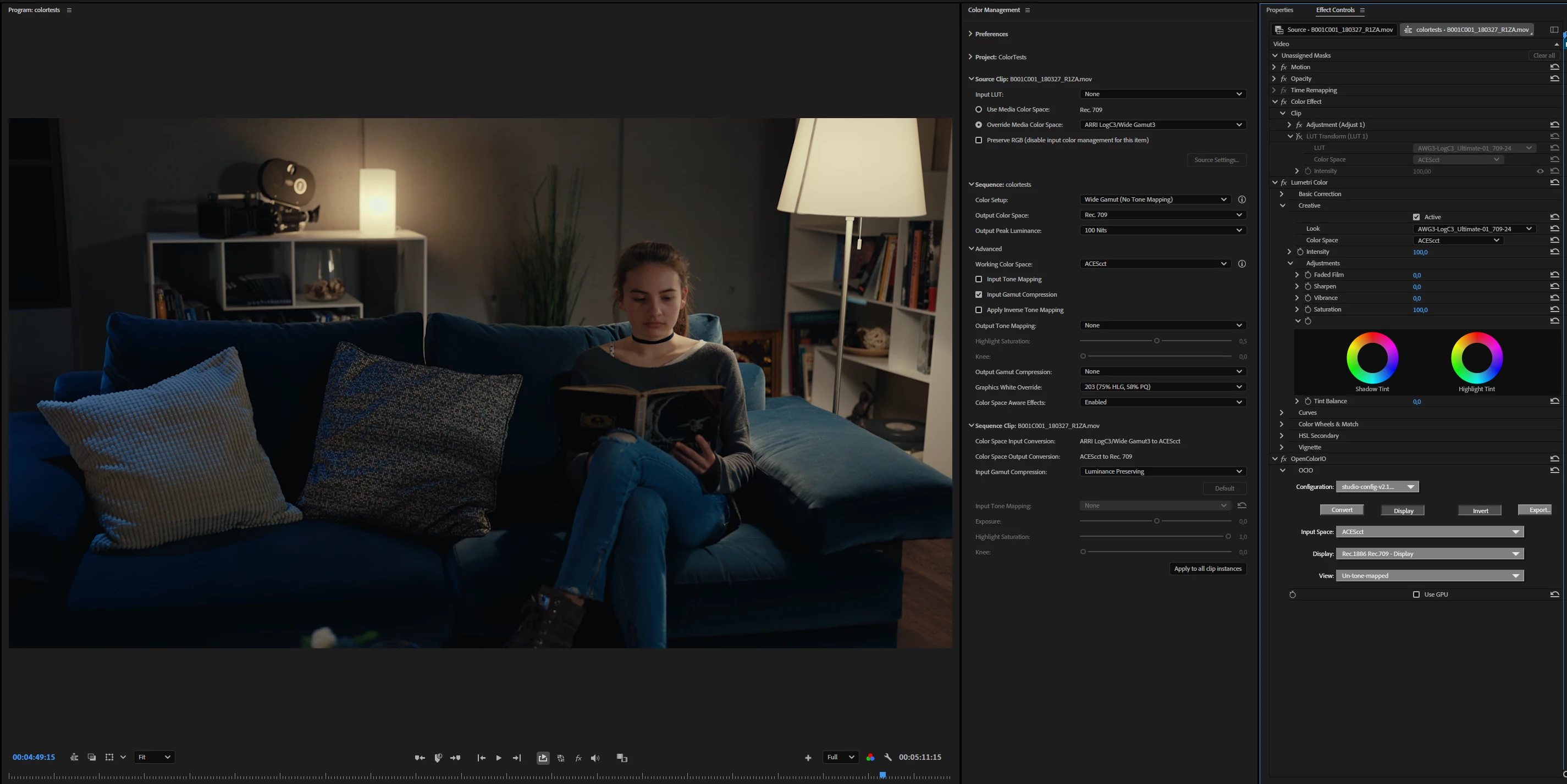 While the Lumetri Color effect remains available in the Color Correction bin of the Effects browser, the Lumetri panel has been replaced by the Color Management panel to support the new Color Mode. Previous projects using Lumetri will import correctly and appear as before, with total color fidelity. If you want to continue making Lumetri color adjustments or adding more Lumetri Color effects, you can do so using the Effects Control panel.