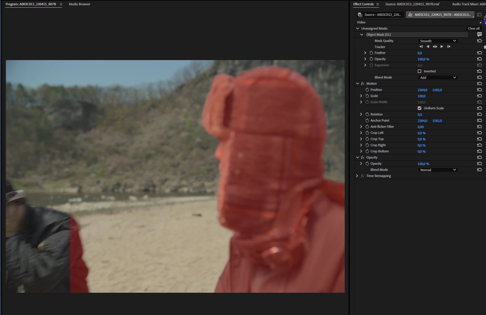 If a project containing a mask created in Smooth mode is opened in Premiere version 26.0, the mask will not be rendered properly. Editing and saving a project with Smooth mode masks in version 26.0 could damage the mask data and corrupt the mask permanently