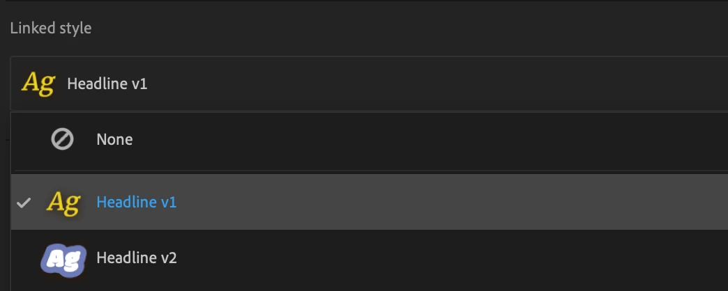 Note: Graphics styles are referred to as "Linked Styles," while captions styles are termed "Track Styles.". This distinction is important, as for caption styles always apply to the entire track, while for graphics, styles apply to text layers.