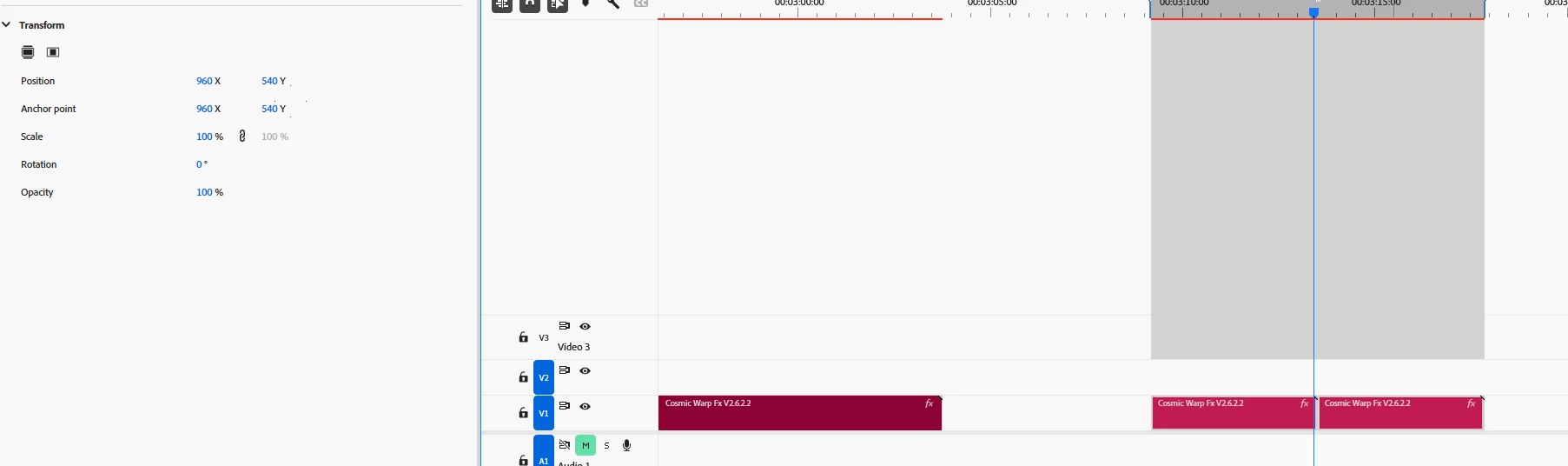 When several MoGRTS are selected in the sequence the transform properties are present in the properties window -- which is great, as there are also new fit / fill buttons too, but what'd be even more conveniet: that selecting several copies of the same MoGRT would show all the controls unified so they could be edited all at once -- like we do with several text layers selected...