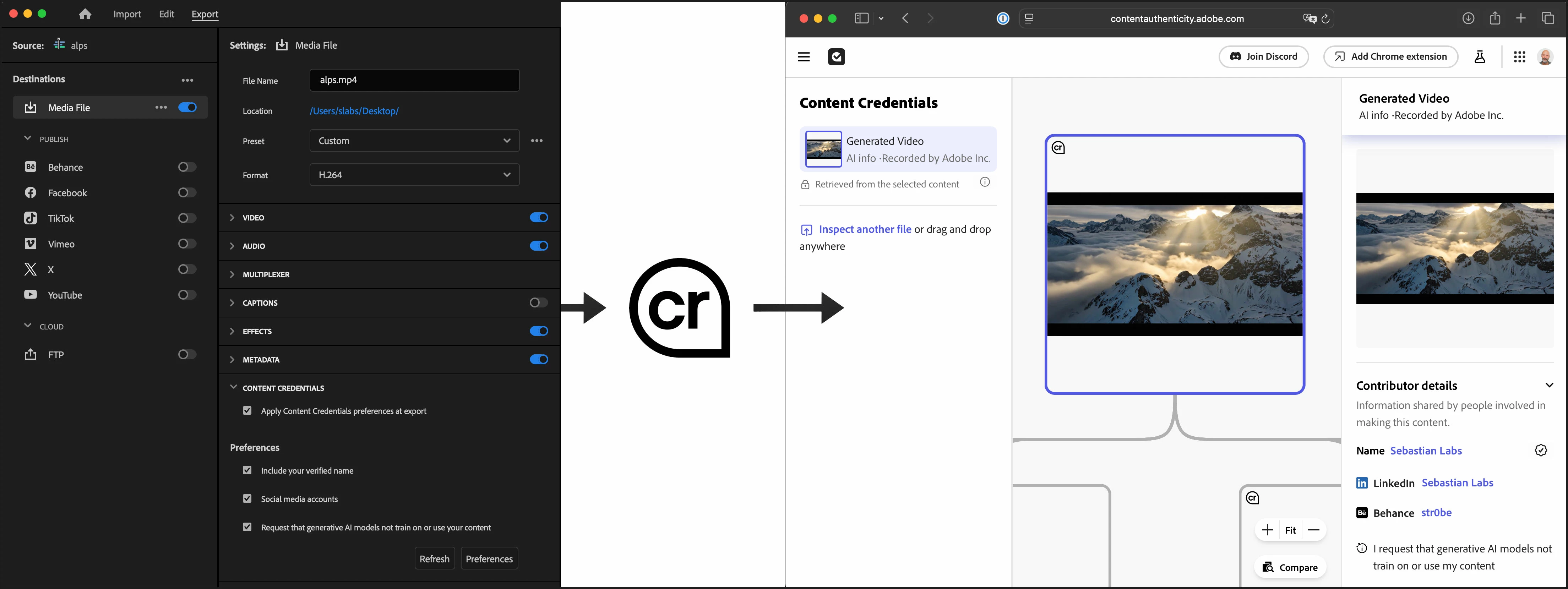 Premiere and Media Encoder can use your preferences from the Adobe Content Authenticity site to sign your exported content, making it easy to protect your work, connect with your audience, and control how your content is used by AI.