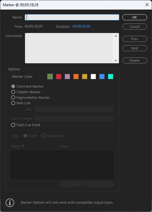 - Use the Add [Color] Marker keyboard shortcut to add a marker or ranged marker of a specific color.