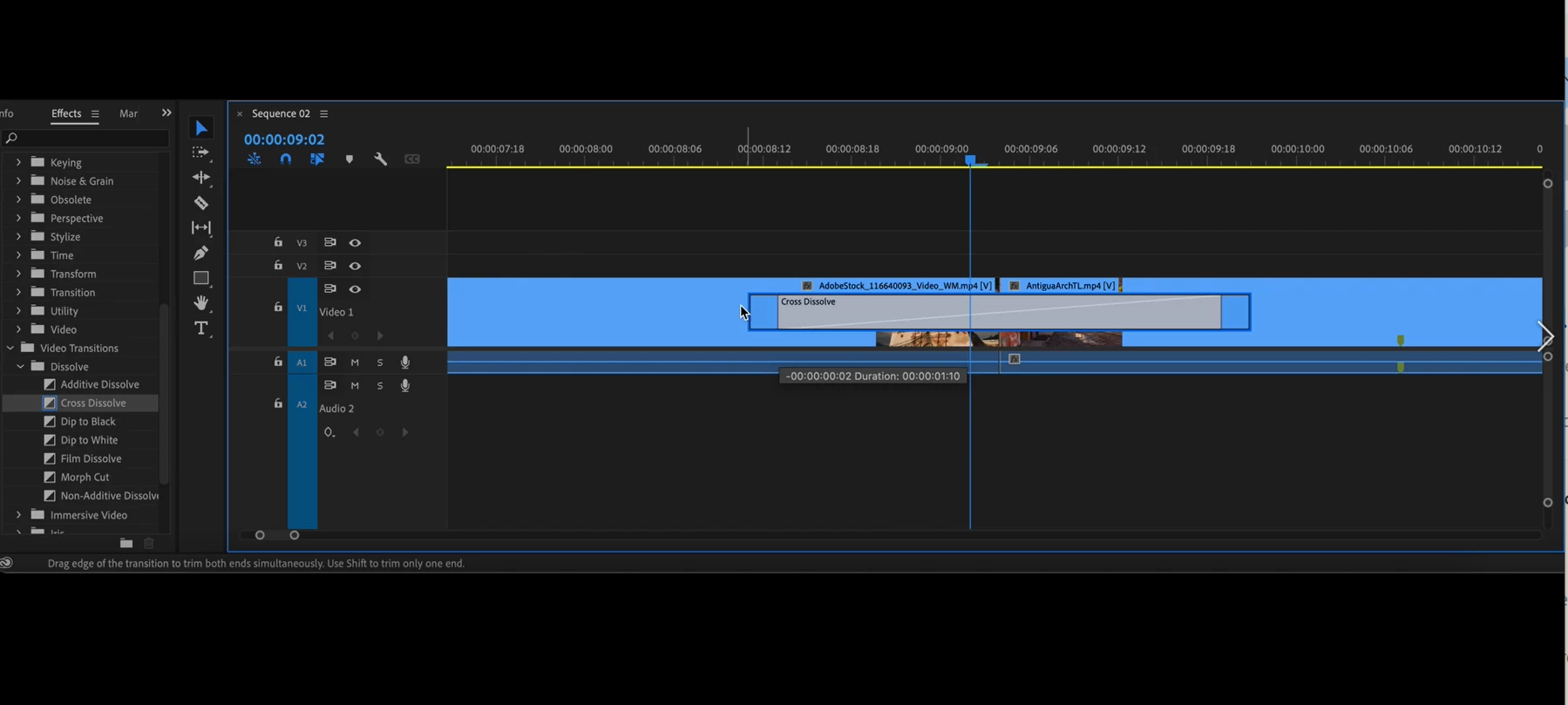 The feedback on trimming, dragging transitions and effects will now draw a blue, shaded rectangle instead of using an inverted color.