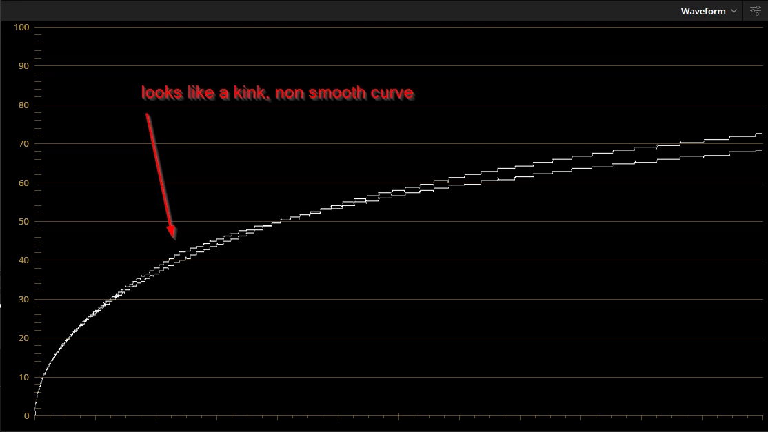 This means that in the tone curve something is causing a non smooth curve to appear. I won't make guesses why this is but I'm really certain that this is undesireable, especially because it's happening in the 'standard range' of the display rather than the 'tonemapped highlights'.