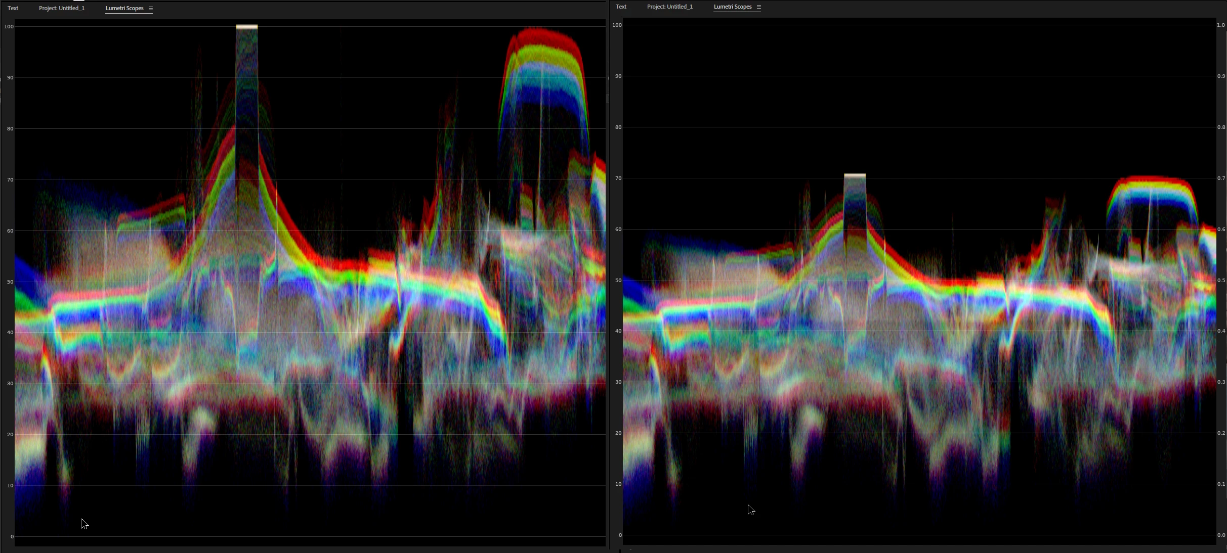 I want to highlight my concern again looking at the differences between direct log to Rec.709 conversion and working in ACEScct. The squish I was talking about can be more clearly seen in the higher resolution scope Resolve has.