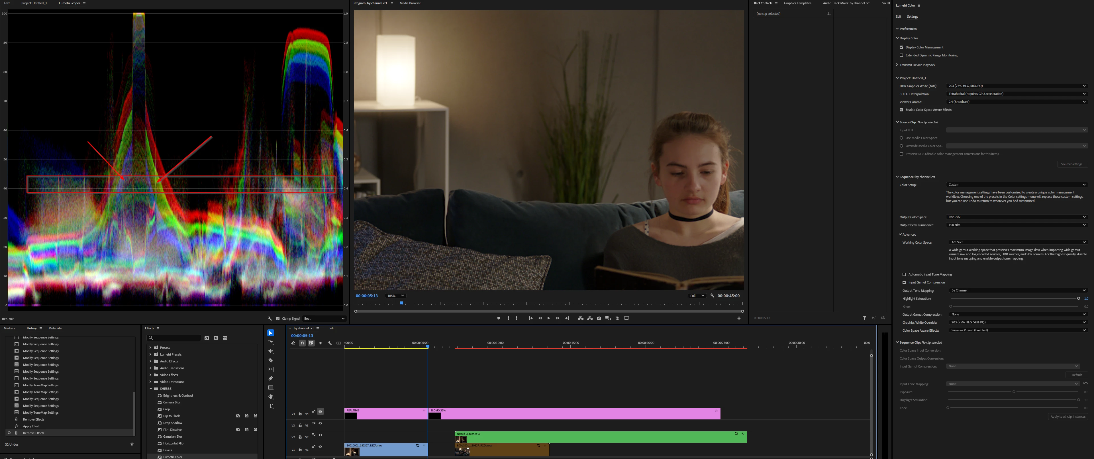 - Last, but certainly not least, if you import projects and sequences created in older versions of Premiere Pro that have grading and effects already applied, these will automatically be configured to appear the same as before, while the color management will function exactly the same as before. If you decide you want to override these legacy settings and use the new color management, you can override the custom settings the sequence was set up with and choose a different color management preset (and you can use Undo if you find this was a mistake).