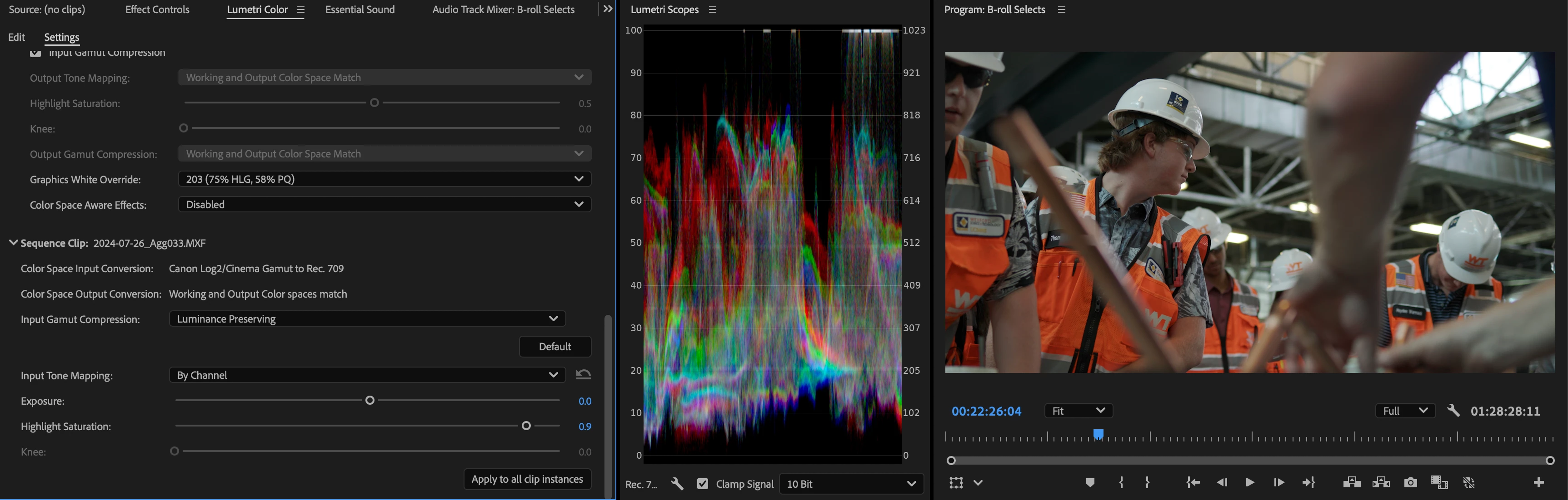 - If you’re more adventurous, you can change the Color Setup menu to “Wide Gamut (Tone Mapped)” to try using the wide gamut workflow we’ve created to maximize the quality of sequences using primarily wide-gamut media.
