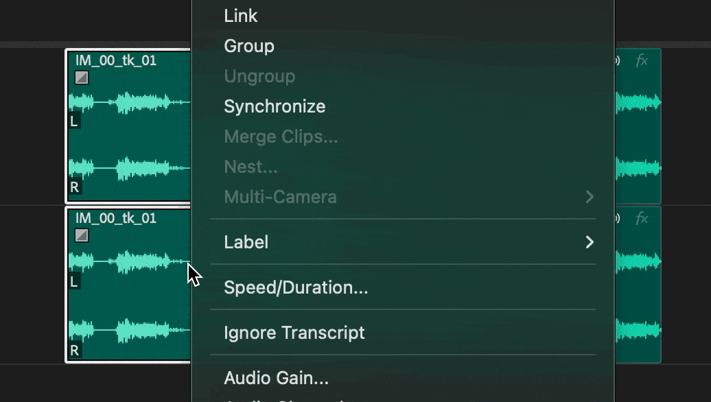 Adjust one transition from a linked clip with a modifier: Use a simple modifier (option/alt) key to tweak the transition of an individual clip, even when it's linked, for precise control.