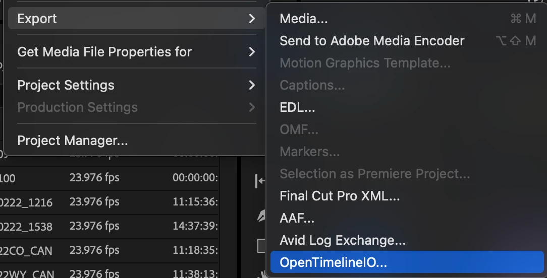 Premiere Pro Beta has support for Open Timeline IO interchage format (OTIO). Our current implementation includes the basic information for interchange with other products that support the OTIO standard: