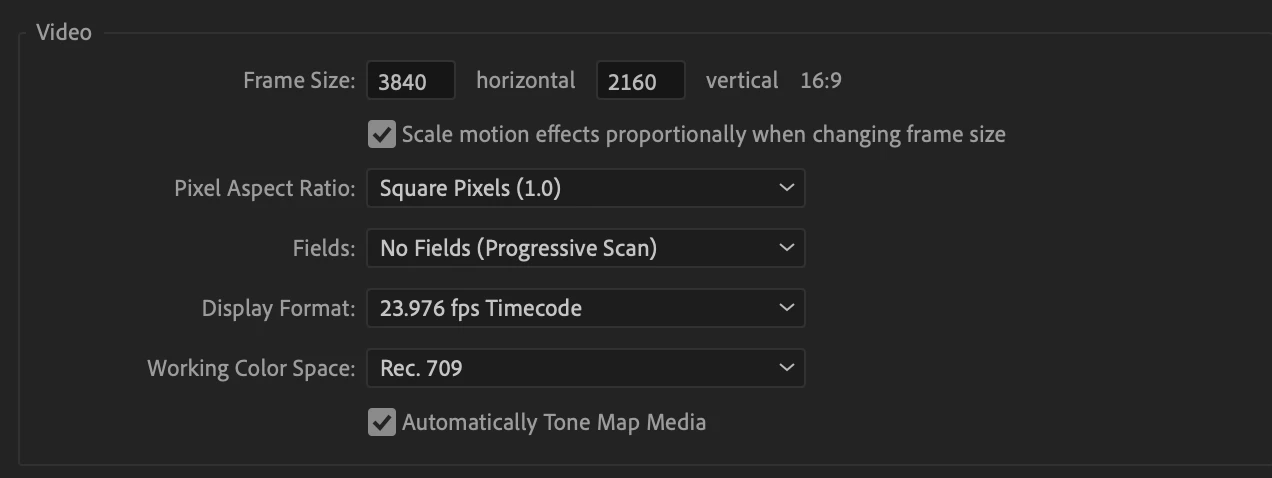 Then you must drag that clip to a Rec. 709 timeline. Tone mapping will automatically be applied, but you can confirm that “Automatically Tone Map Media” is checked in the Sequence Settings: