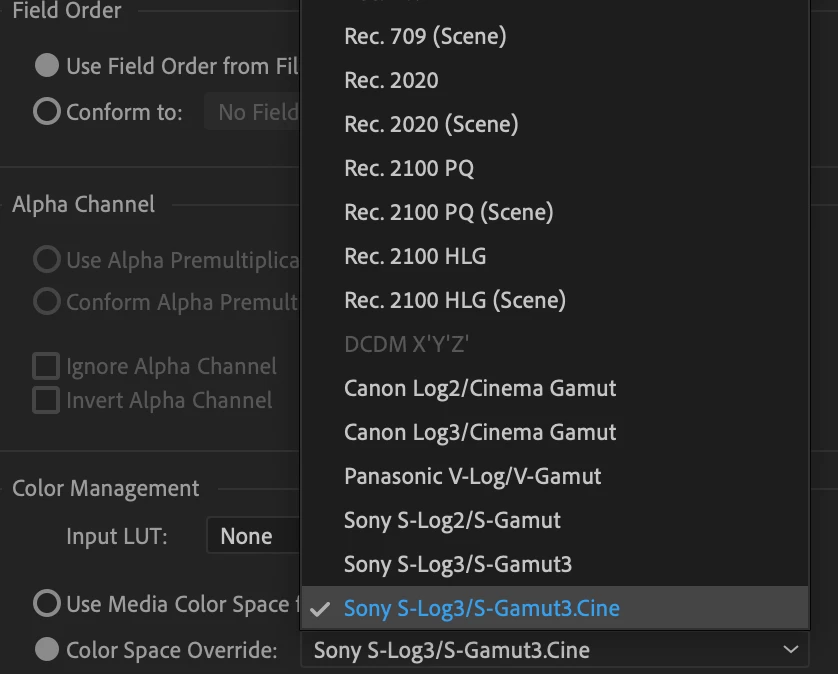 All other log media must be enabled manually by overriding the color space in the Interpret Footage Dialogue.