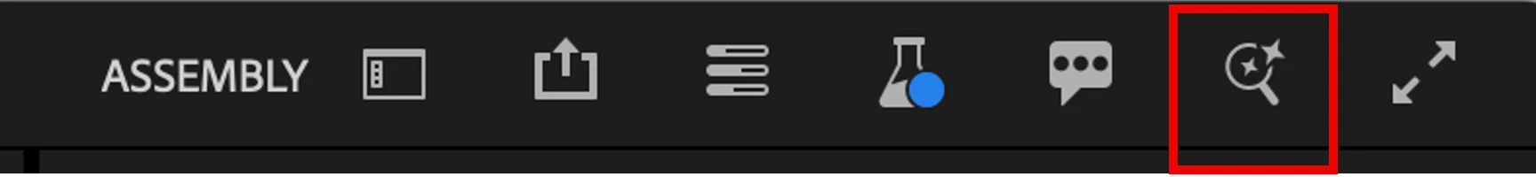 - Open the Search Panel using the magnifying lens icon in the top-right corner of Premiere Pro
