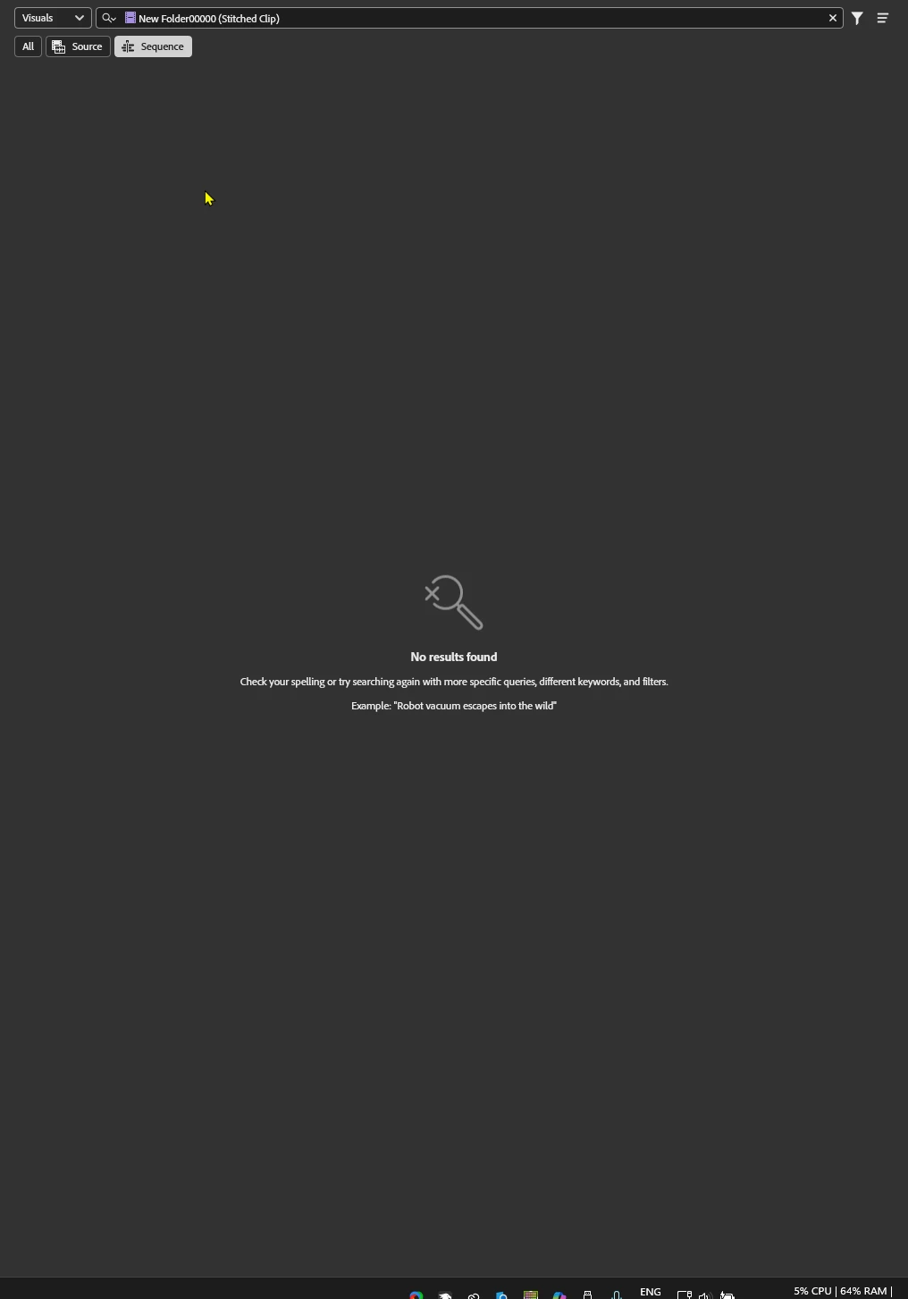 - In the Search panel, right click on a visual result and choose “Search Similar Frames”