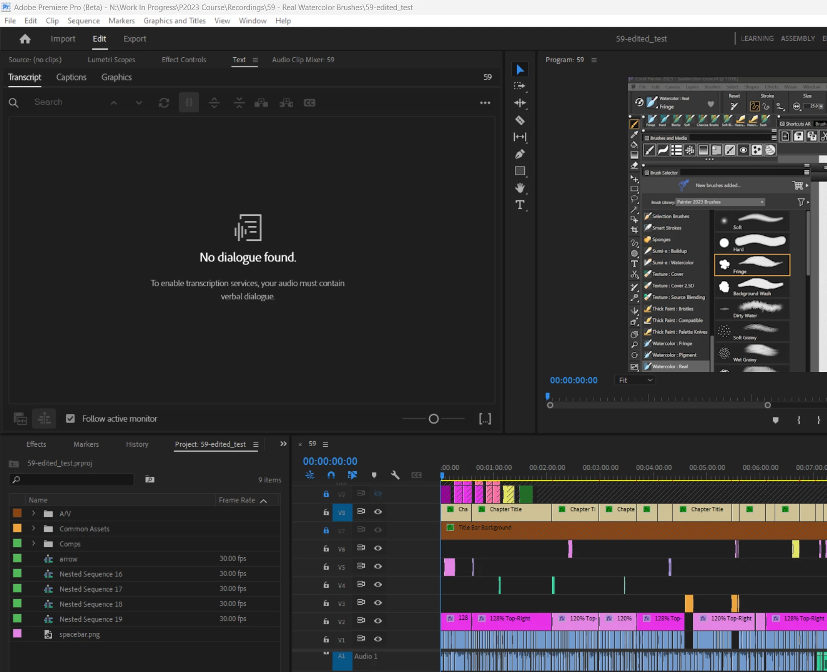 It also seems like I can't correct my text in a text editor in this workflow. The option to import the corrected transcript is grayed out. Presumably because the transcript lives within the source clip and not the sequence. There should be a way to fix it in the sequence and then have it be corrected in the source clip.