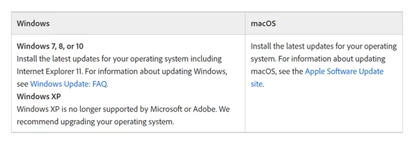 Adobe products are designed for the latest operating systems and browsers. Learn how to keep your operating system and software up to date.