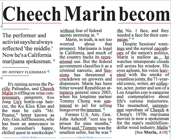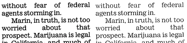 The problems with newspapers start with the fact that the paper is not white and the thinness of the paper causes the text and anything else on the back side to show up through the page. Thus, if you just run the scanner on a section of newspaper you'd get something like this: