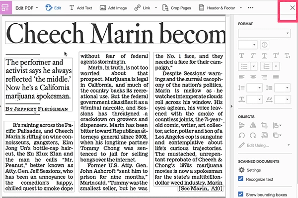 Had I not done that cleaning, Acrobat could still do the conversion to PDF and making it search-able as shown below.