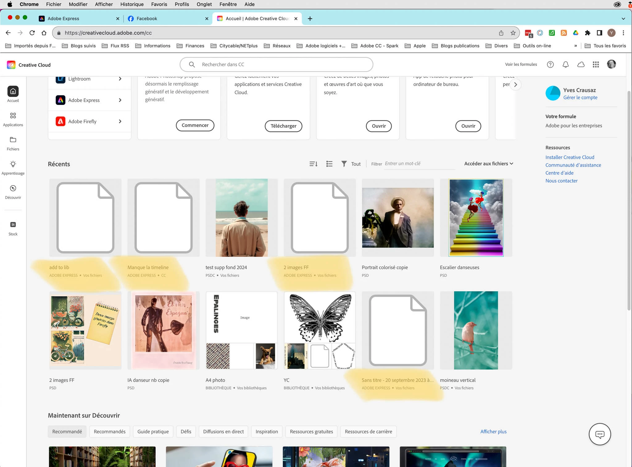 Sur la page d'Accueil de l'application de bureau CC ainsi que /cc affichée dans un navigateur WEB; sous Récents, le contenu des fichiers AdobeExpress ne s'affiche pas sur la vignette représentant le fichier si l'ordre de tri est celui représenté via la flèche vers le bas, si on inverse cet ordre de tri, ces vignettes sont affichées correctement; ce n'est pas pratique pour la gestion de ces fichiers, alors que ce contenu est vissible sous Fichiers/Vos fichiers