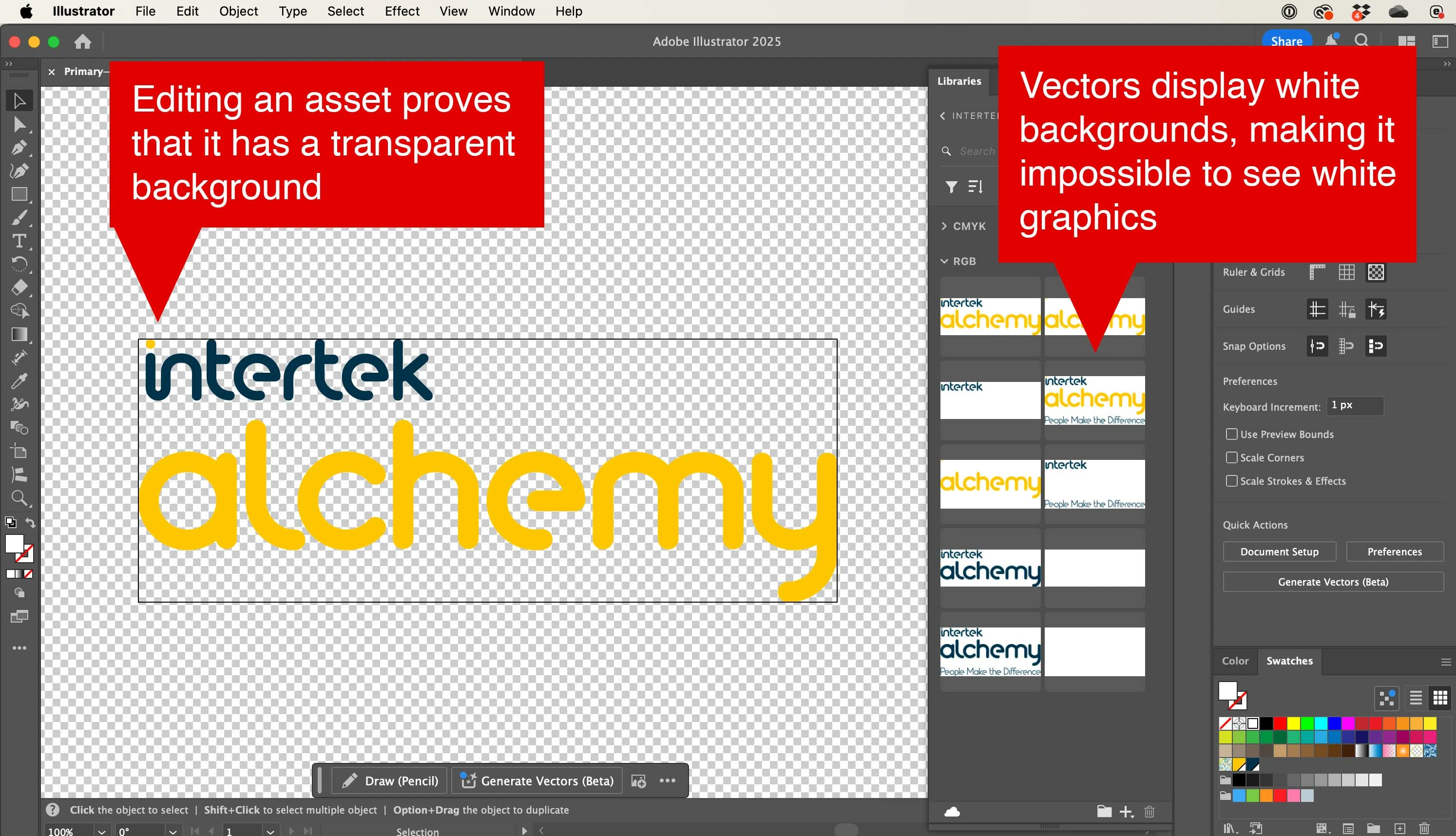Some assests in my CC Library appear with a white background, and because of that white graphics are not visible at all.