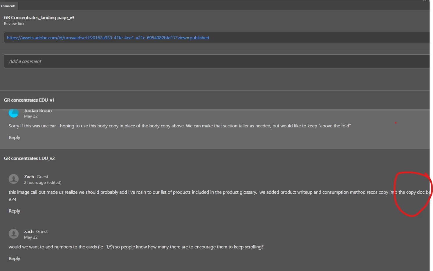 When I click on the feedback pin on a shared illustrator document it doesn't always take me to the corresponding comment in the comment feed. And vice-versa - if I click on a comment in the comment feed it doesn't always highlight the corresponding pin on the artboard.