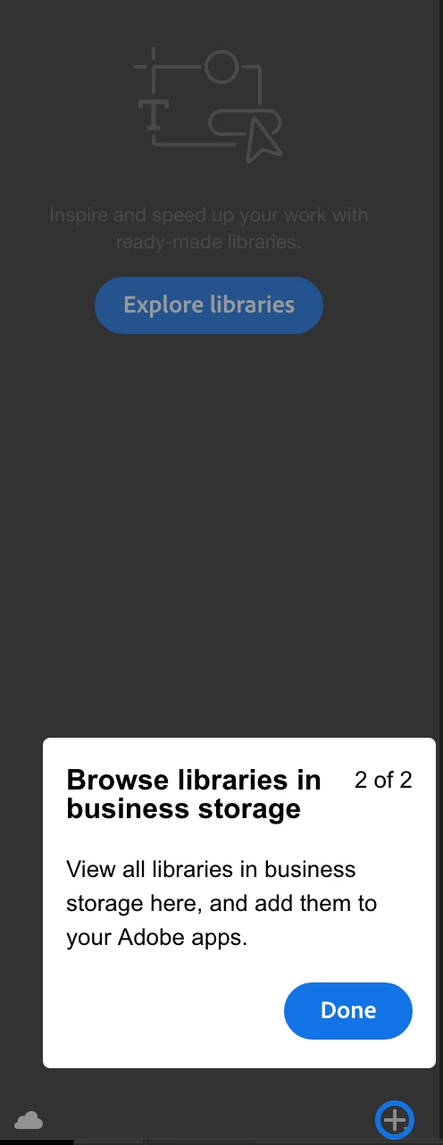 I am unable to access my Libraries on Adobe Dimensions because this tip pop-up is unclickable.