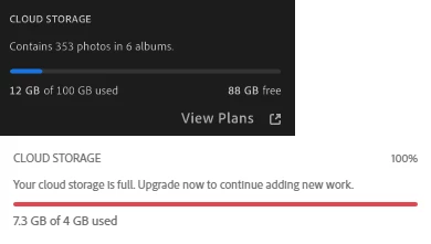 Lightroom says it has 100gb of space, and CC says it has 4gb of space. After uploading a bunch of photos to Lightroom, it says 12gb/100gb used, but CC says 12gb/4gb used (storage full) So how are they connected? I dont see how i can have 100gb of space in lightroom and 4gb in CC