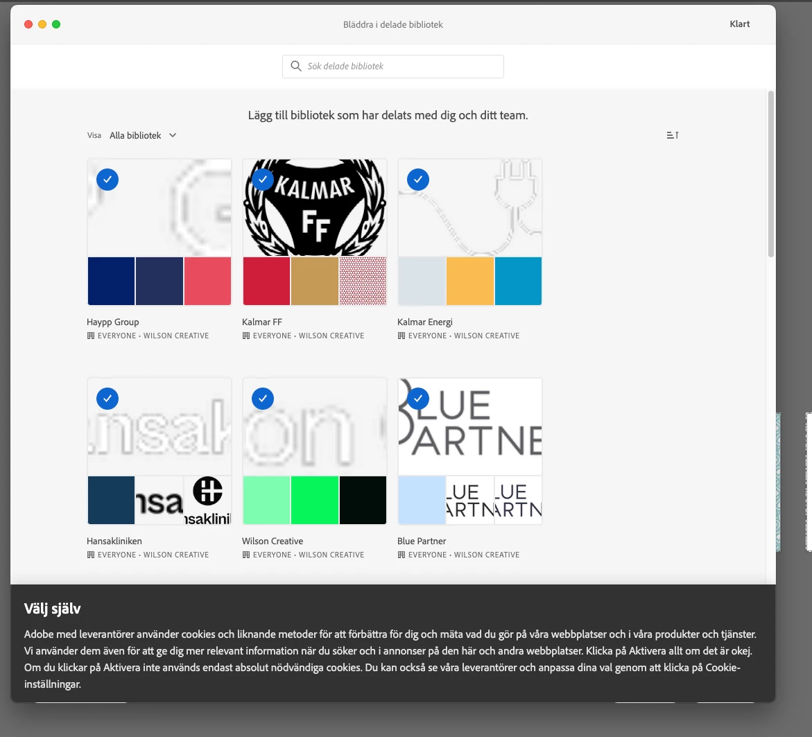 We use Adobe Creative Cloud Libraries for our team, therefore I often view all shared libraries within the organisation.