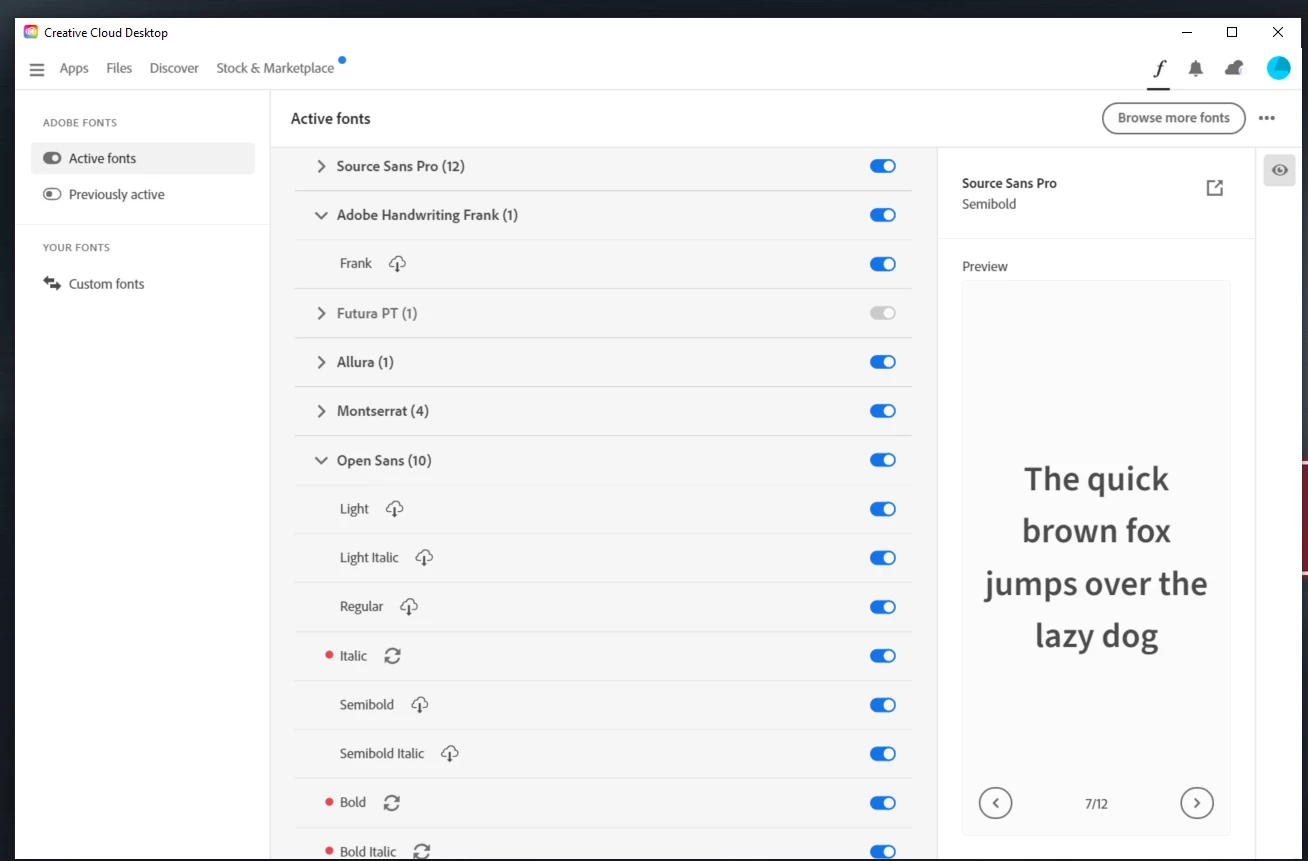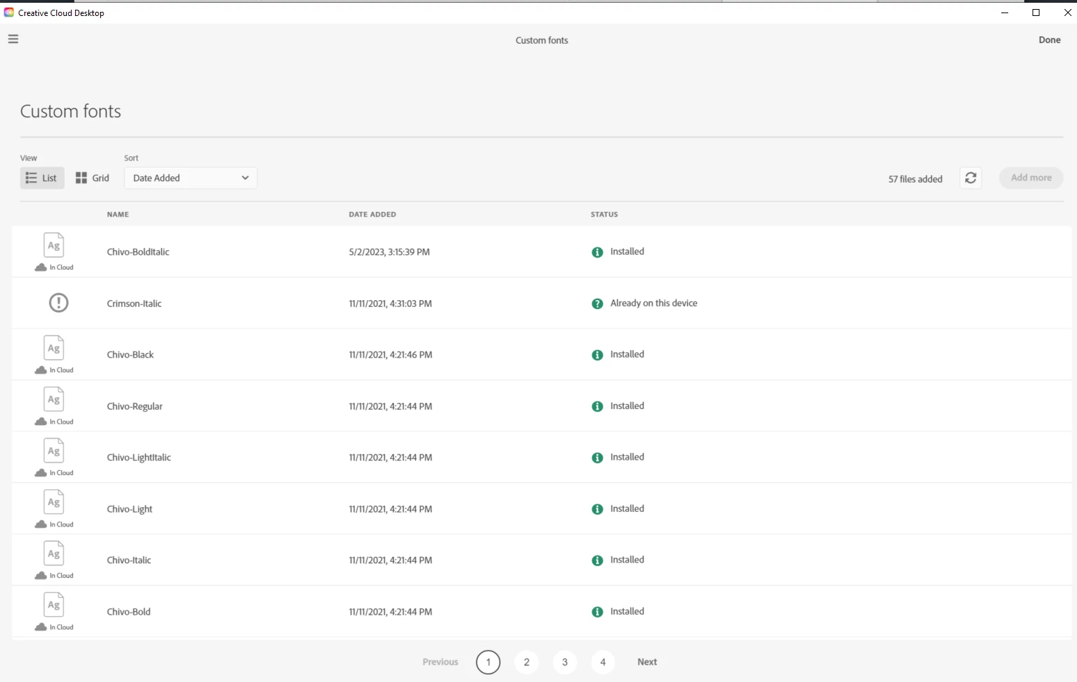 There is no scrolling option in the users viewing of the adobe fonts installed or in the custom library. Yes there are page numbers in the custom library but if you have a particularly large font family you cannot view all the fonts and moving to another page starts a new font. Scrolling was available in 2022 when I set up my custom library, however it is no longer available in 2023 and makes life very difficult with large libraries of fonts. see attached.