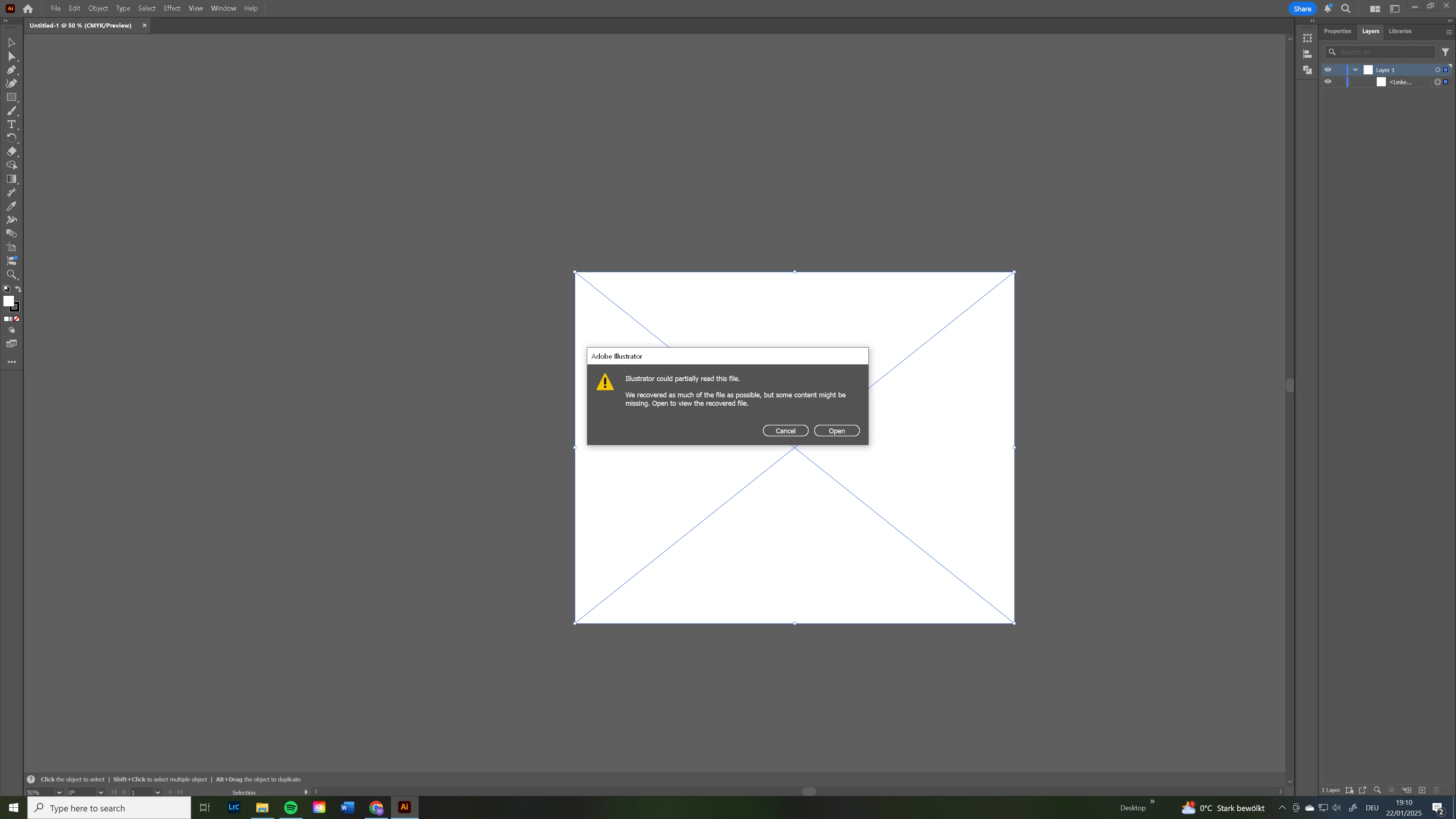 I have downloaded a corrupted file from Adobe Stock "AdobeStock_136174951". Illustrator gives me the attached error message "Illustrator could partially open this file" and then it opens an empty artboard.