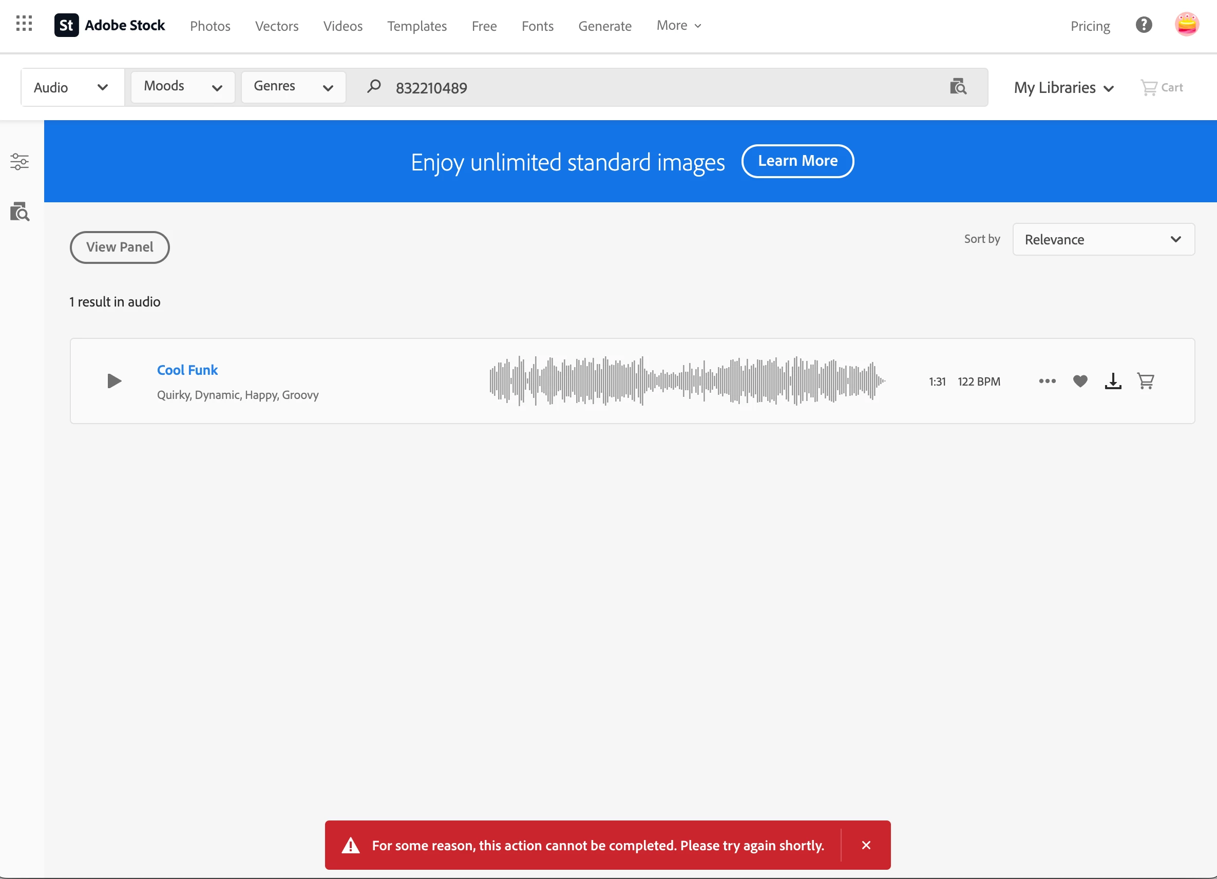 I keep recieivng the error "For some reason, this action cannot be completed. Please try again shortly." when trying to download audio preview files from Adobe Stock. I'm on an Enterprise account at my workplace using Google Chrome. MacOS Sonoma 14.5.
