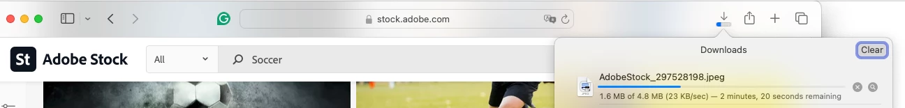 Adobe Stock Images downloading took too long. 4.9mb file took almost