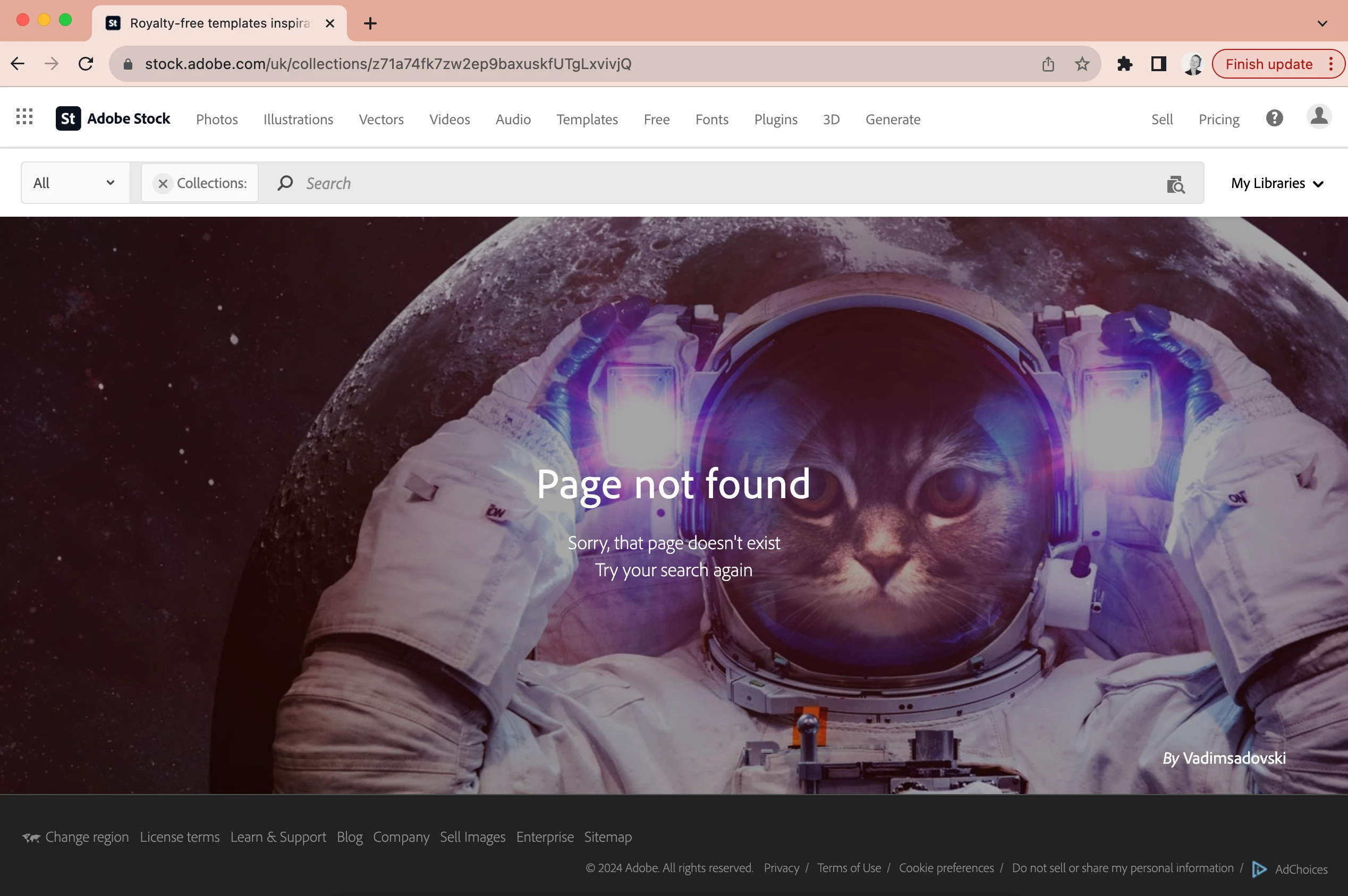I just purchased a free trial for adobe stock, but when I login to my account, the search engine does not load any content and get to 'page not found'.