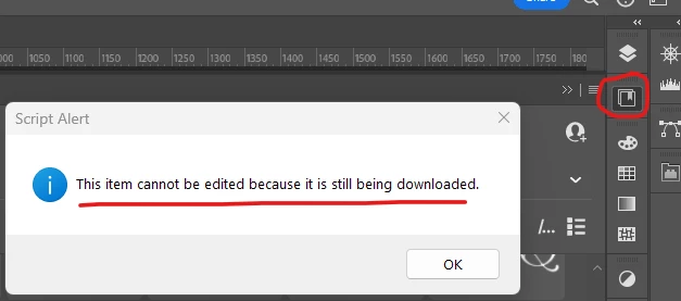 Bug Report: Photoshop - "The item can not be edited because its still being downloaded"