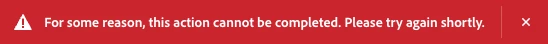 (For some reason, this action cannot be completed. Please try again shortly.)