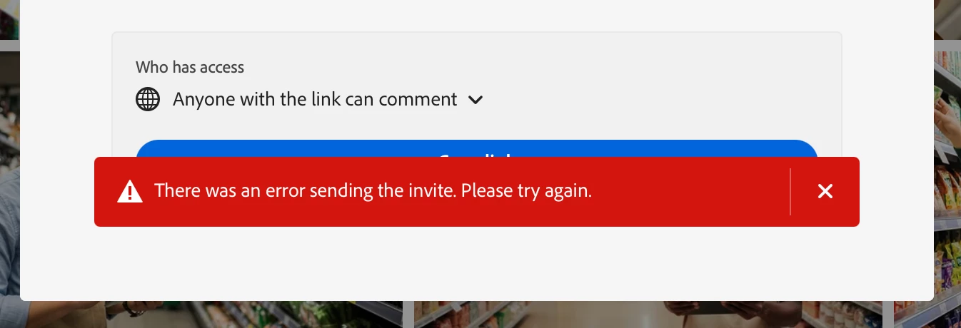 I'm trying to share an Adobe Stock Library with a client and keep getting an error message: