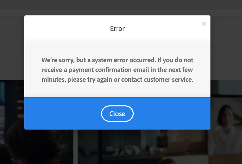 I have a persistent issue with my Adobe Stock account for months now. I am unable to buy more images when my credits run out. I just get an on screen message as per the attachment....