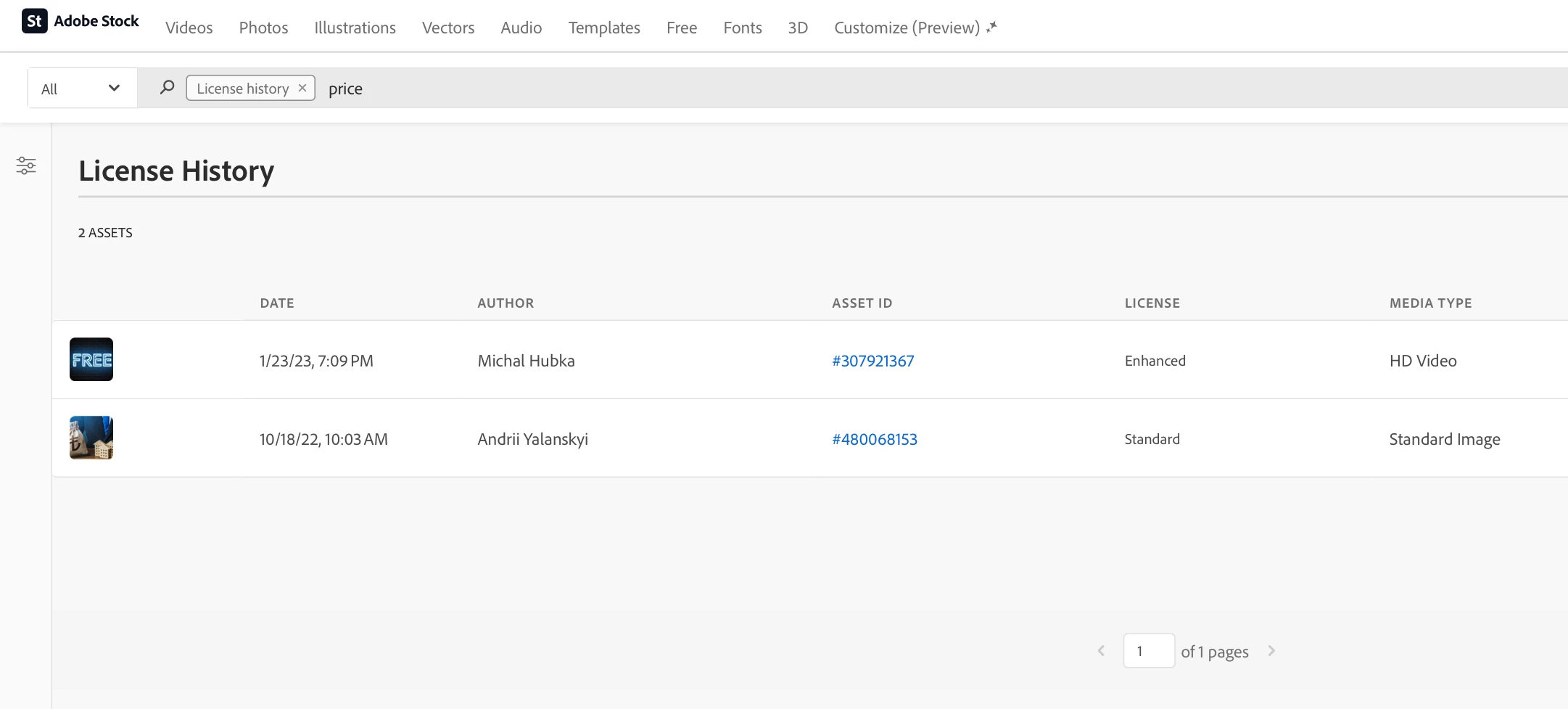 Hi, I use a company account and when I try to filter a video search by a specific word using the License History feature, it shows no results. It is working fine for images but not for videos. I used to do this filter search in the past but for some reason is not working anymore.