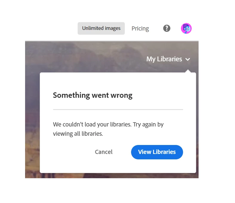 I just want to ask regarding downloading with Adobe Stock there's an error pop up regarding loading with libraries..why this is happen..i can't download graphics from adobe stock..
