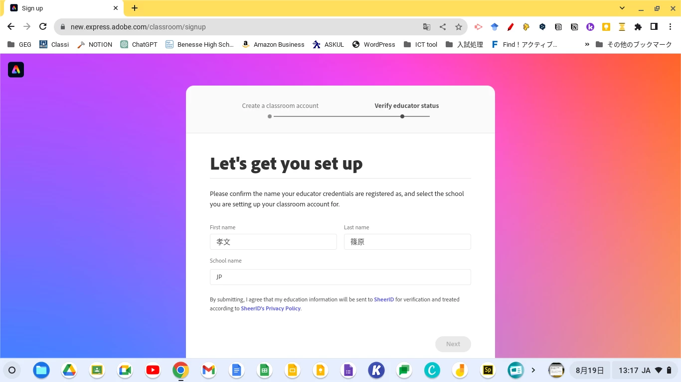 TTaka ShinoParticipantForum|Forum|2 years agoAugust 19, 2023教育機関として認識されませんForum|Forum|2 years agoAugust 19, 20232 replies304 views新しいExpressにログインいようとしたところ、これまで使えていたプロジェクトも「有料のものが含まれています」と表示されます。 ということは、教育機関のID(アカウント)として認識されていないと思います。ログアウトし、ログインしようとすると教育機関、Classroom Managerの登録が求められますが、候補に自分の学校が出てこないので登録することもできません。 学校用Expressが使えずに困っています。デスクトップ webSubscription