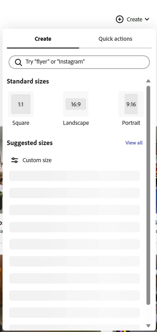 Adobe Express BROKEN (started with: Create Menu not loading options)