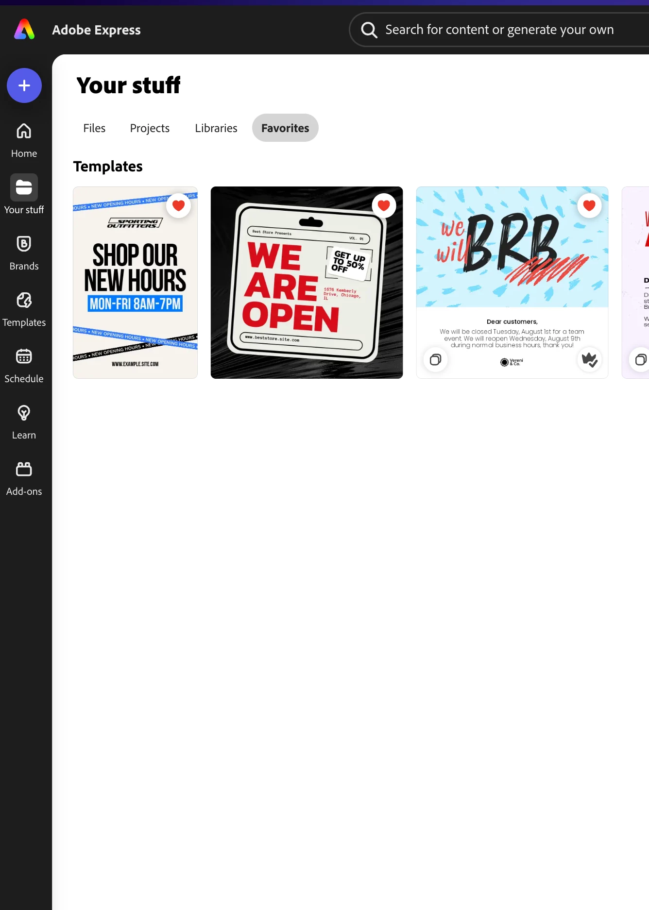 Adobe Express Favorite Collection Not Working Properly