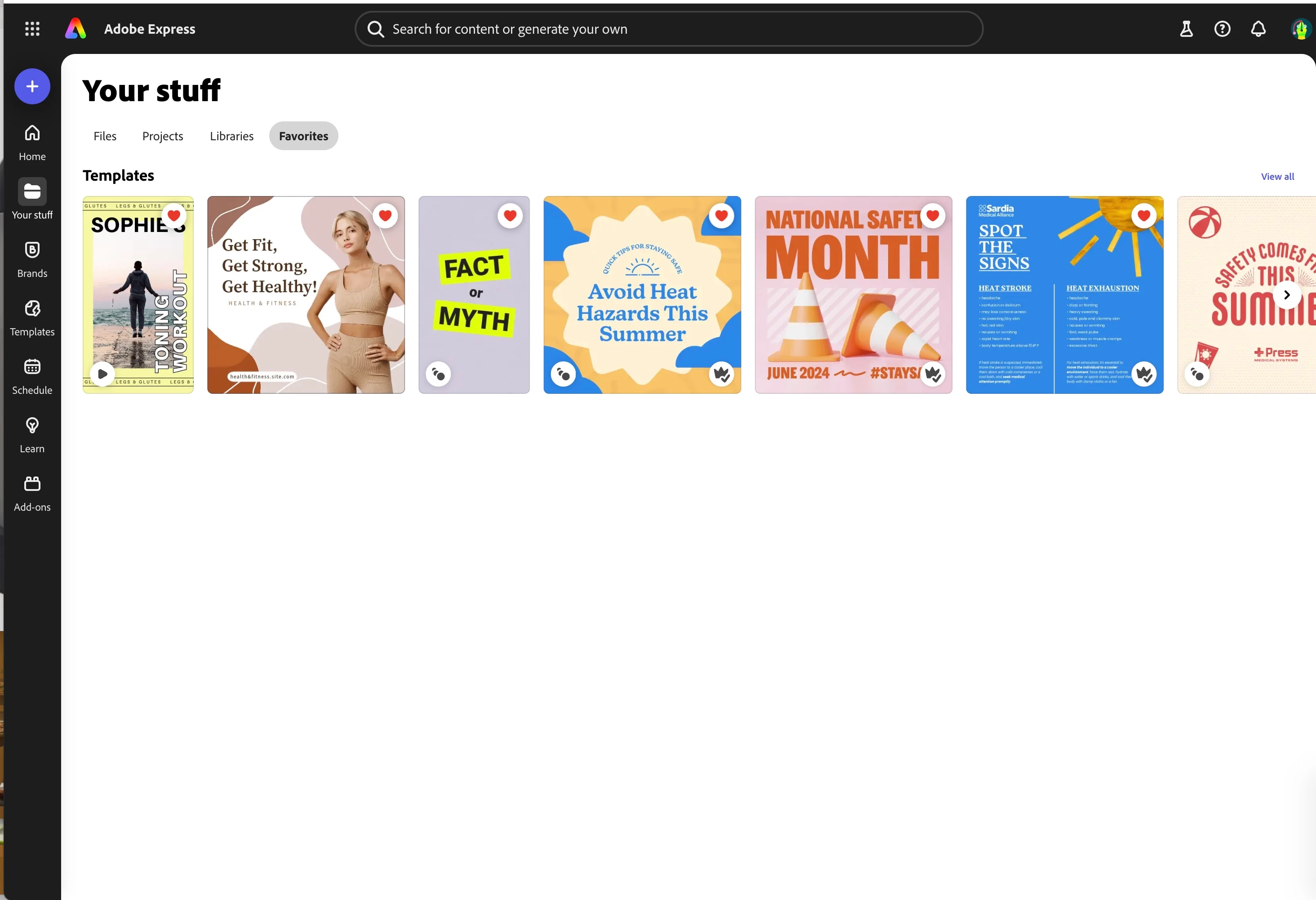 I've been using adobe express in the app on my iphone 18 and Macbook air via Safari I have the lastest updates and software on both. The favorites folder is empty both places.