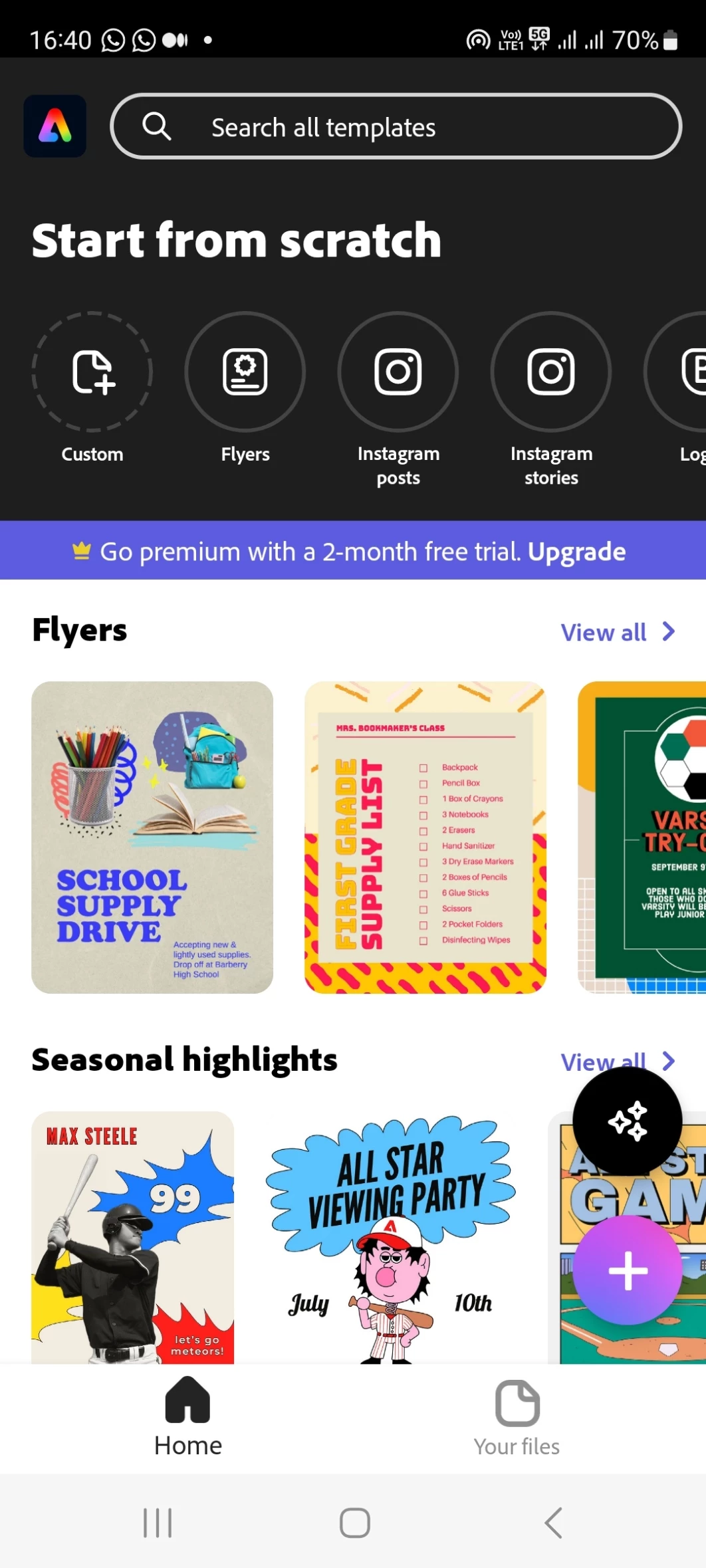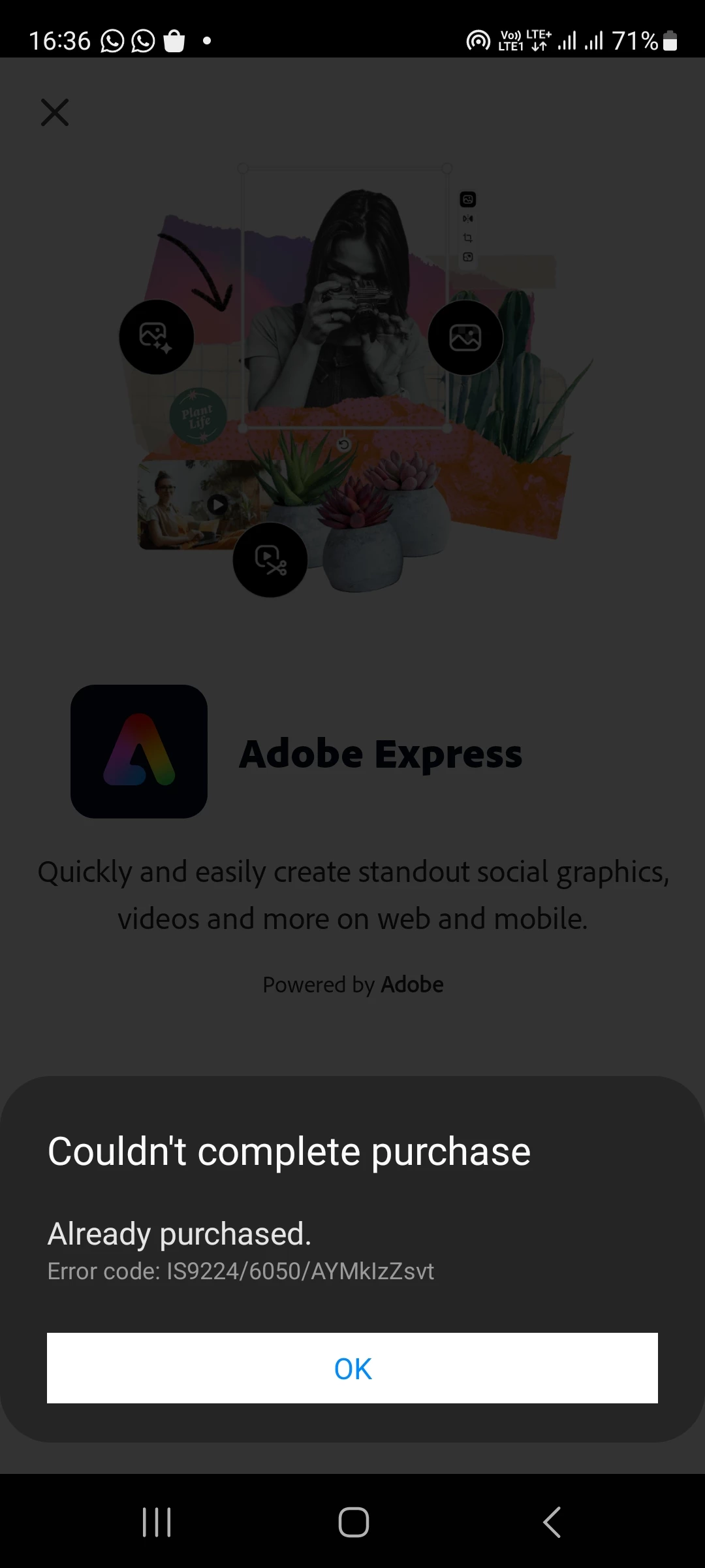 Adobe Express free trial 2 months on Samsung phone still shows subscribe button