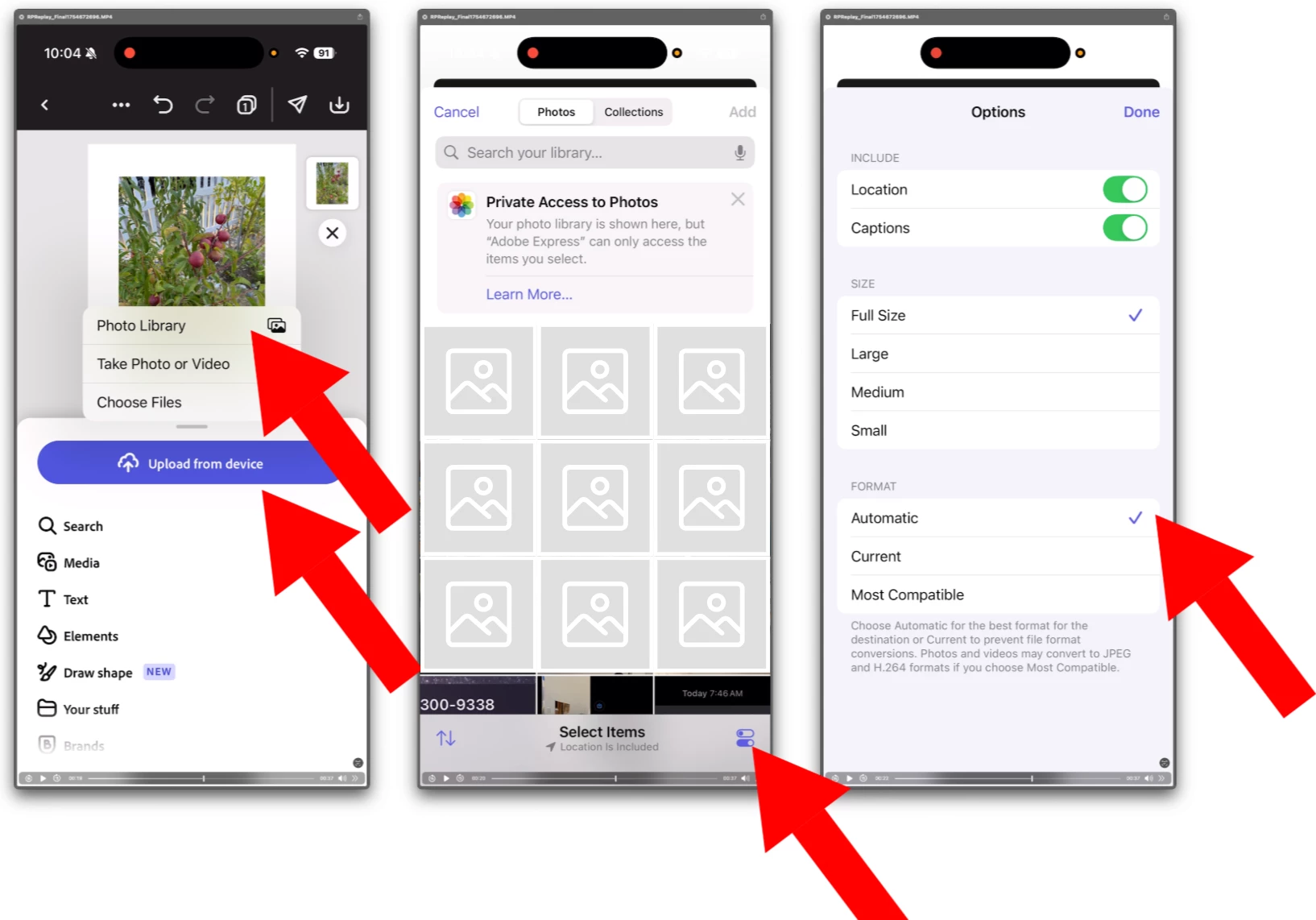 Hi @Dabo318, when the three options pop up to upload an image: "Photo Library", "Take Photo or Video", or "Choose files", which of these are you using?