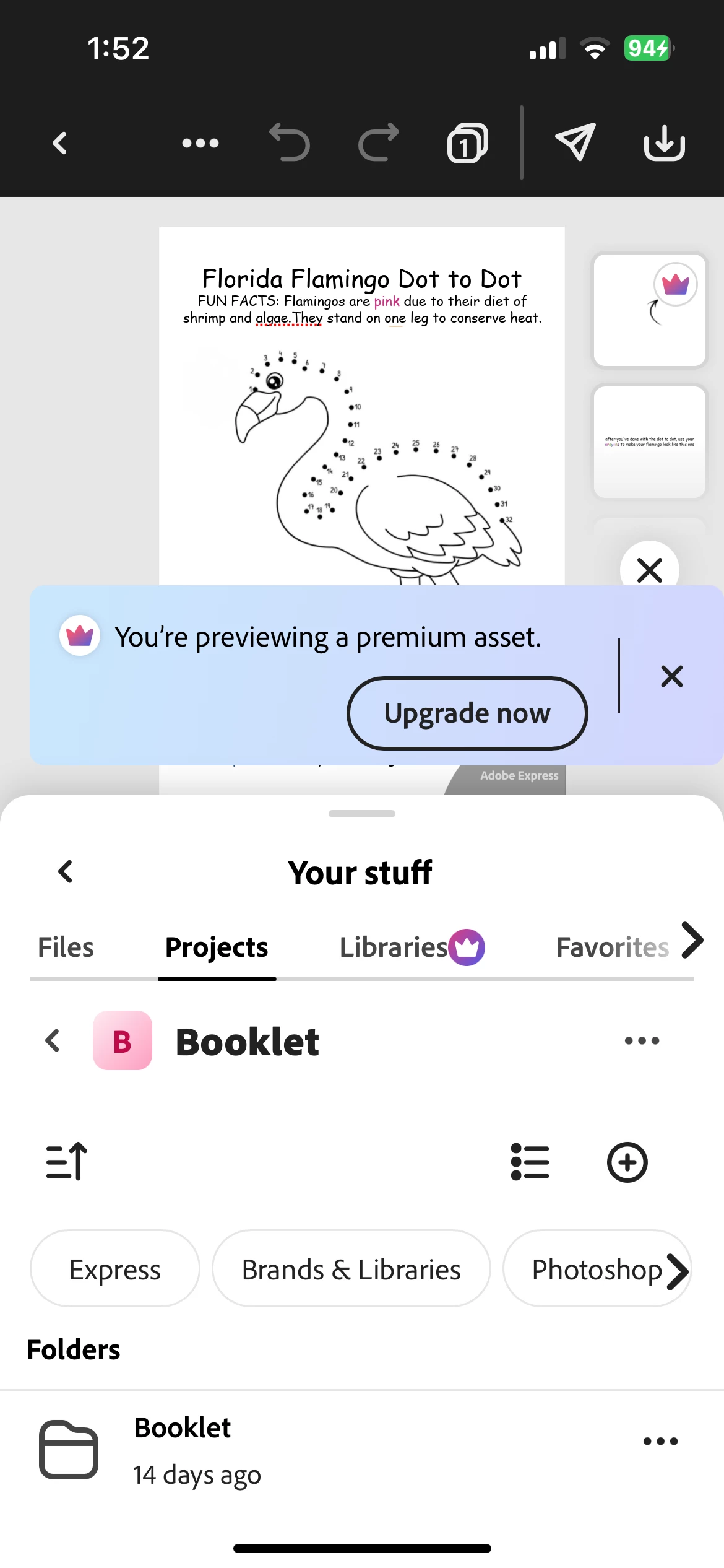 I created a project in Adobe Express, a coloring booklet. Now that I'm ready to print I find I must upgrade to Premium-WHY? Each page was created and saved, without issue, over the past few months. I need to print the days and days of work I put into this and cannot do so. HELP!
