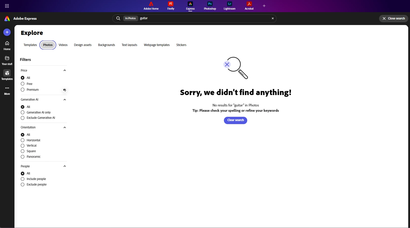 Adobe Express has become slow & unresponsive. If it loads without an error, only templates are available in searches or favorites. Cache and relevent browsing data has been cleared multiple times in Chrome. I reported a similar issue in August of this year. Please advise.