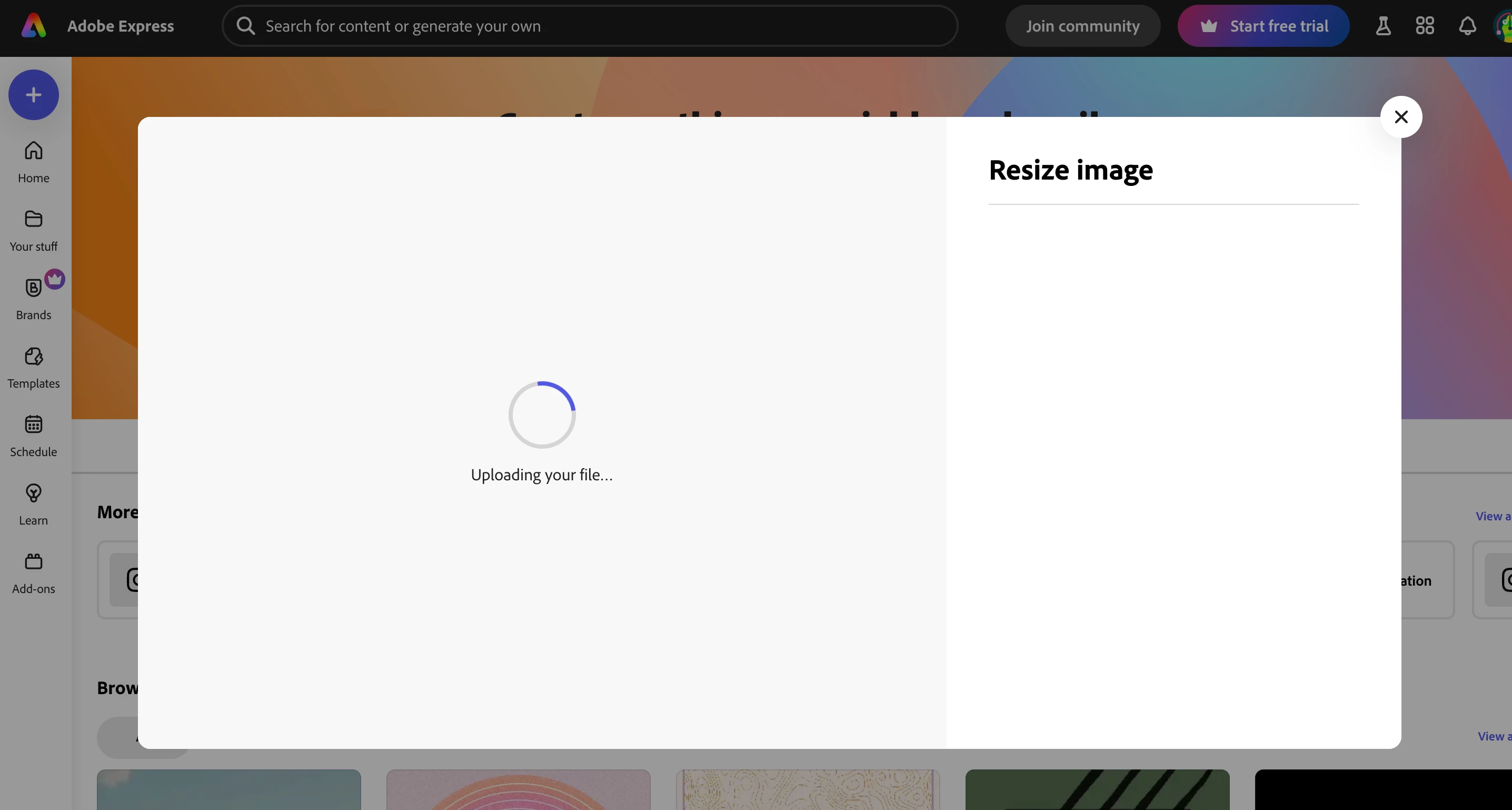 Since Autumn 2024 I've been unable to access my past files or create new ones. It sticks at the loading screens below if I try to create anything new (e.g. upload a new image, create a square IG file) or open anything I created in the past. If I leave the tab or app open for a length of time it never loads.