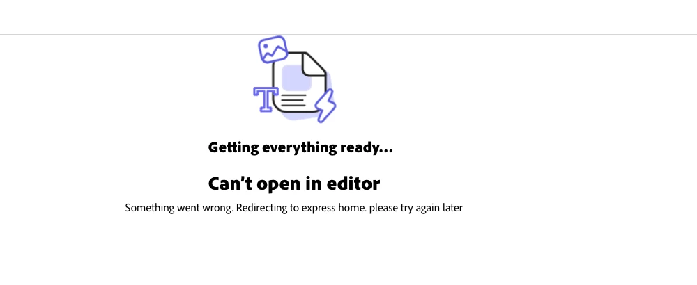 The adobe express services in the browser and app are not working. This has been happening for weeks, while it works on my phone it doesn't opn my PC and it says getting things ready and never loads. So frustrating. Can't Adobe just make technology that works smh.