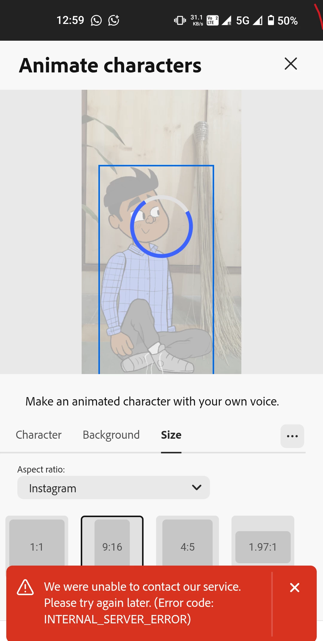 Ce weekend j'ai commence à utiliser adobe express pour animer des personnages a partir d'un audio  mais aujourd'hui cela ne fonctionne pu et me met a chaque fois des erreurs or j'ai besoin de ces animations pour mon travail