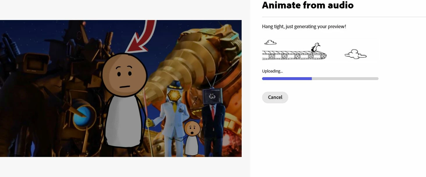 When i try to animate something from audio the bar is not loading , it stays on preparing forever .